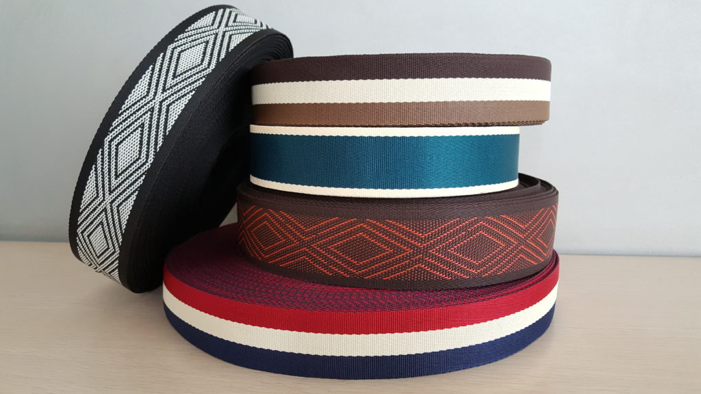 Productnendenap2018-04-27T11:36:22+07:00 We produce wide array of webbing tape which include Jaquard webbing tape, Elastic tape, Rigid webbing tape, made out of nylon, cotton, polyester, etc.